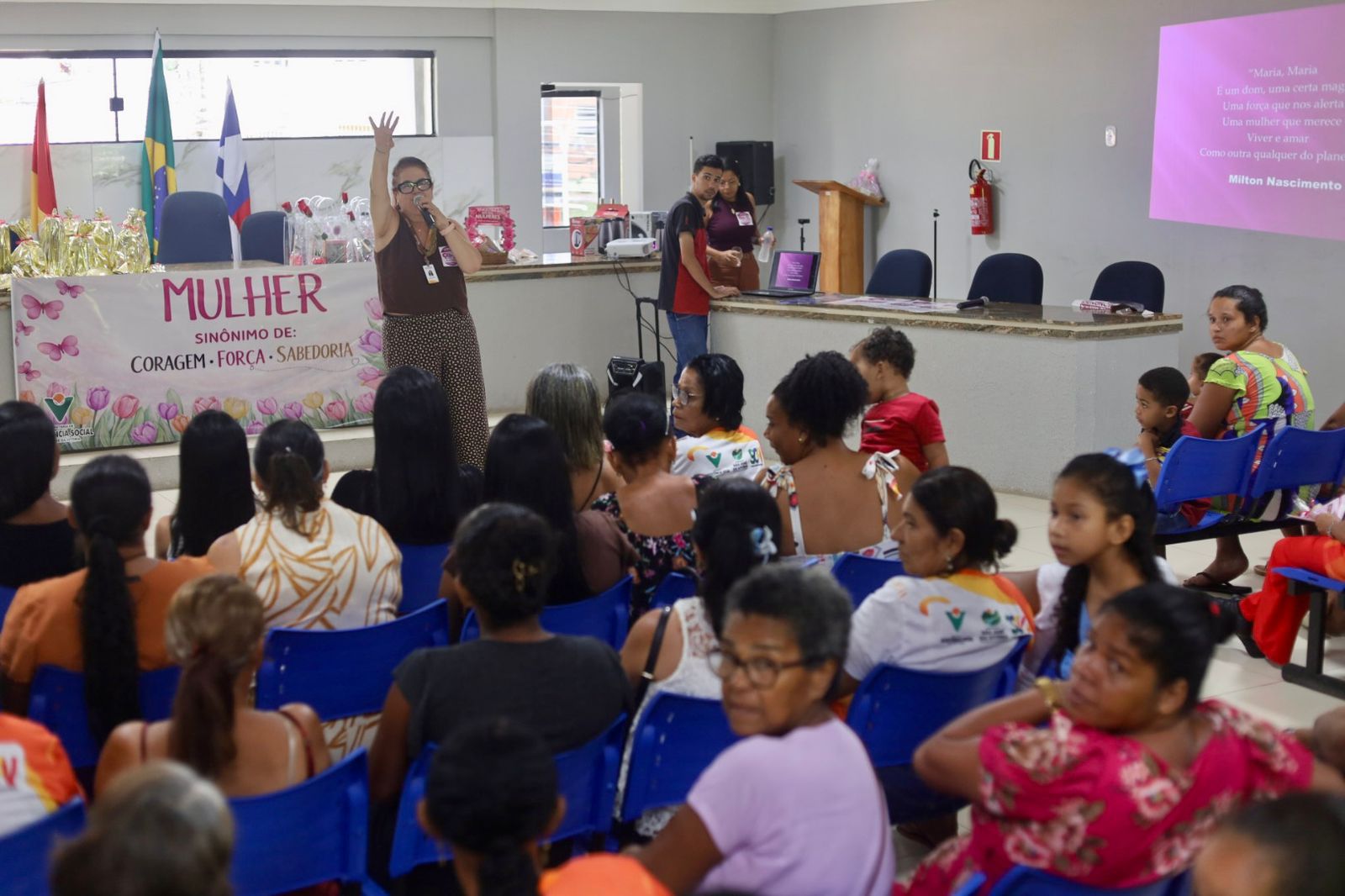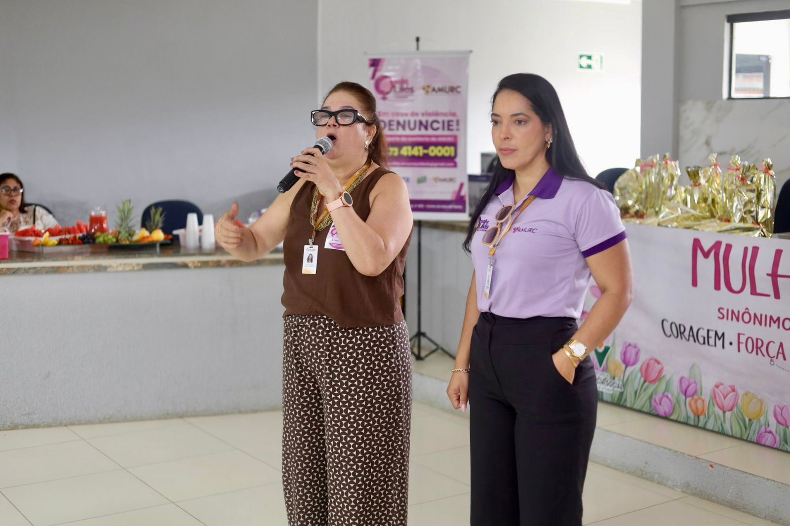 A secretária executiva, Rita Souza apresentou a palestra “AMURC em defesa das mulheres: feminicídio zero, uma luta coletiva” e destacou o trabalho realizado pelo Suporte de Ouvidoria da Sala Lilás, equipamento de atendimento às mulheres vítimas de violência que está instalado na sede da AMURC.